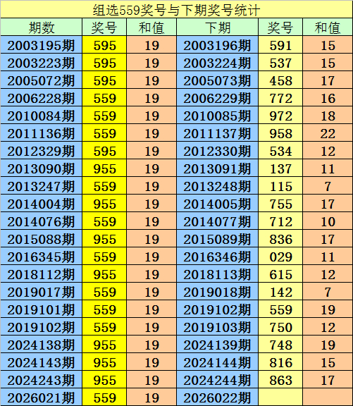 第2026021期3D奖号组选为:559,历史上该号码组选出现21次,下期号码分手为:591、537、458、772、972、958、534、137、115、755、712、836、029、615、142、559、750、748、816、863。