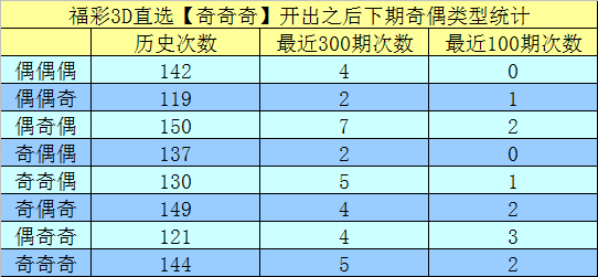 上期开出奖号559,其奇偶类型为:奇奇奇,该类型组合历史上开出了1093期,最近100期开出了12期。