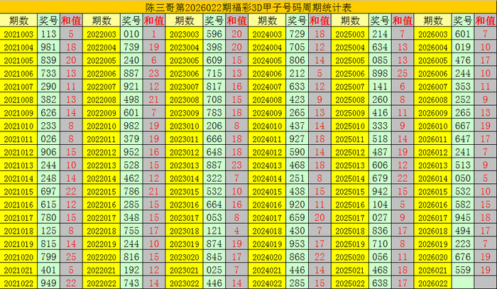 陈三哥3D第2026022期甲子号分析: